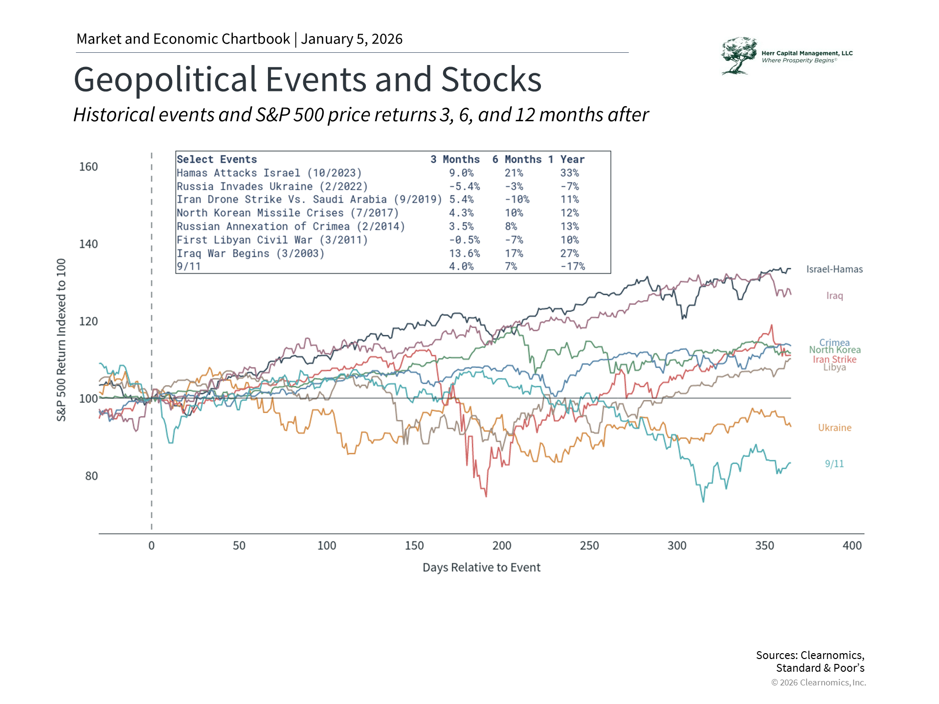 History provides important context: geopolitical events often create short-term market volatility, but their long-term market impact tends to be limited. This is because these events don't typically change the direction of broad economic and market drivers, even if oil production is affected. This has certainly been true of geopolitical conflicts in recent years, including in Ukraine and the Middle East. Understanding this pattern can help investors maintain perspective and focus on the factors that historically drive market performance.