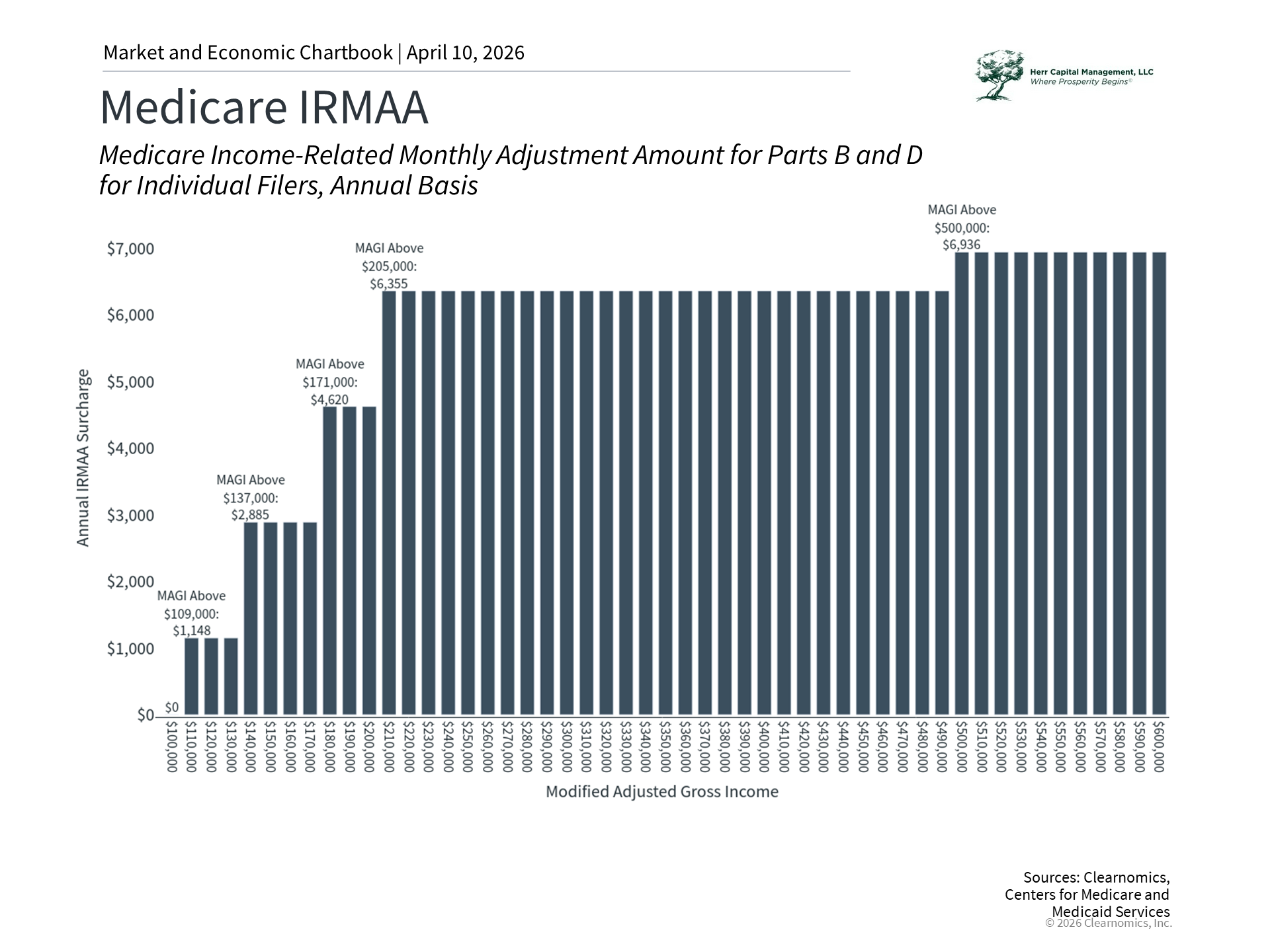 IRMAA stands for Income-Related Monthly Adjustment Amount and it affects Medicare Part B and Part D premiums. Unlike the marginal tax brackets that many taxpayers are used to, where only the income above each threshold is taxed at a higher rate, IRMAA operates as a cliff. This means that if your income exceeds a threshold by even one dollar, you pay the full surcharge for that entire bracket. This can catch even savvy retirees by surprise if their income rises above certain levels.